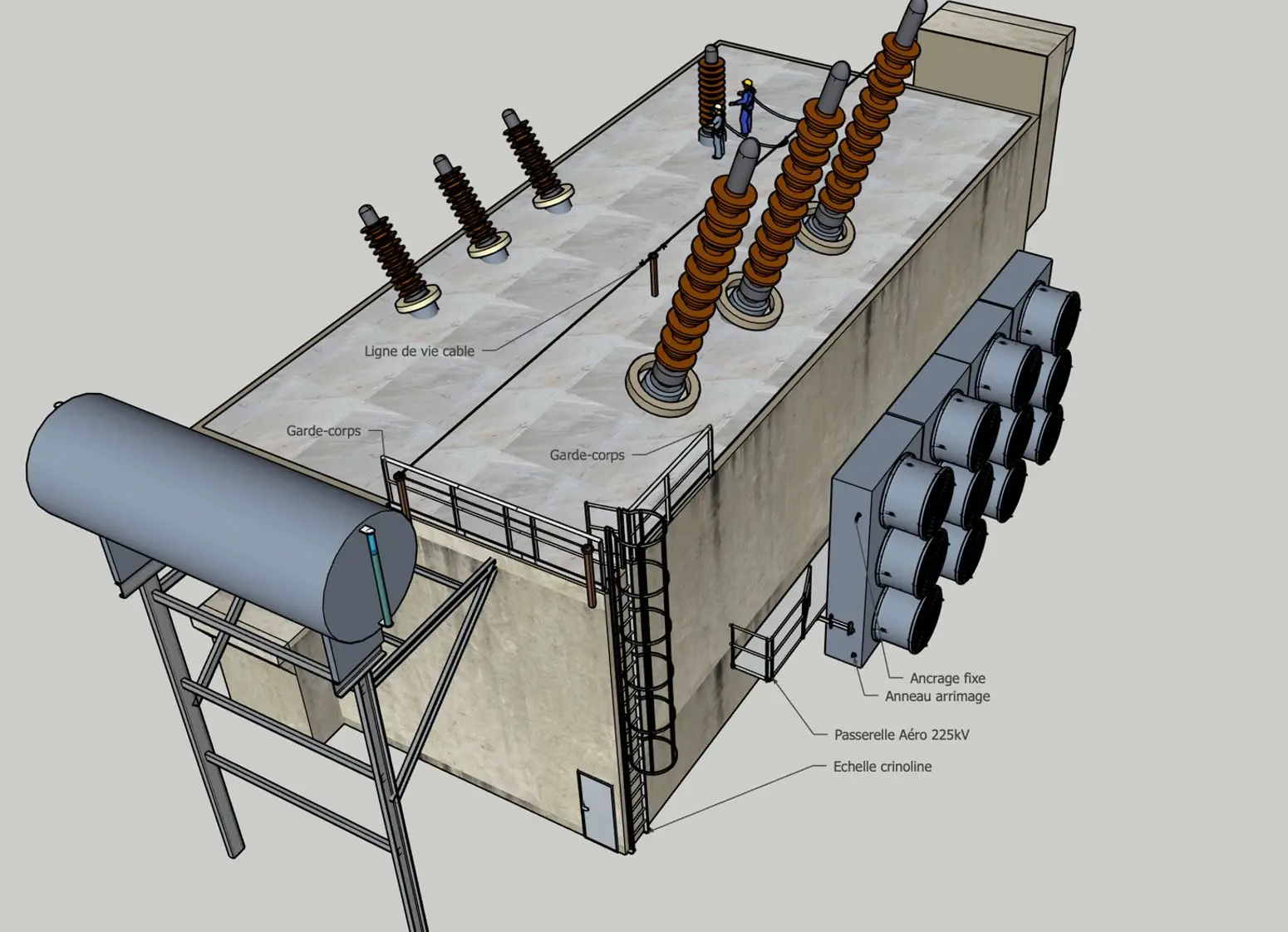 - Des moyens d’accès : passerelles d’accès, échelles fixes, saut-de-loup…